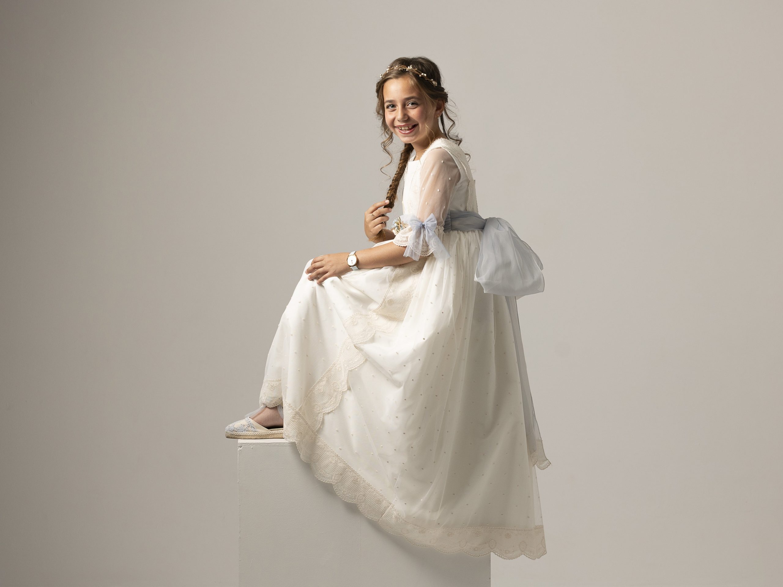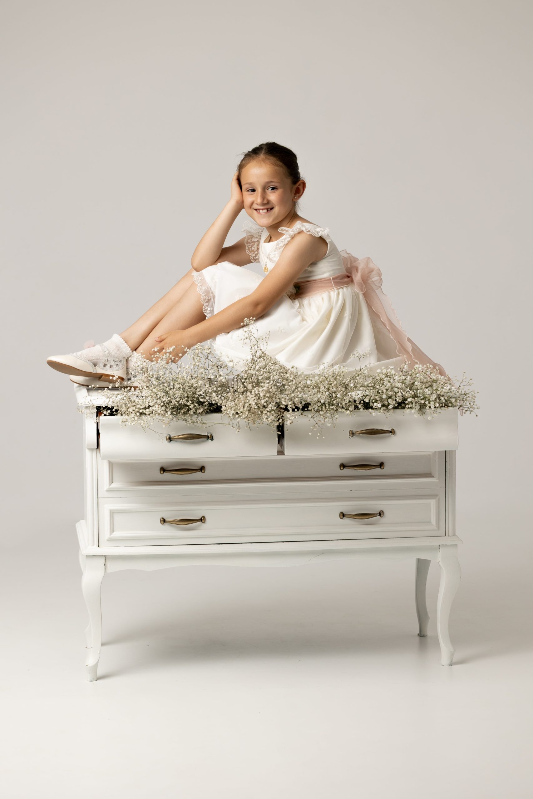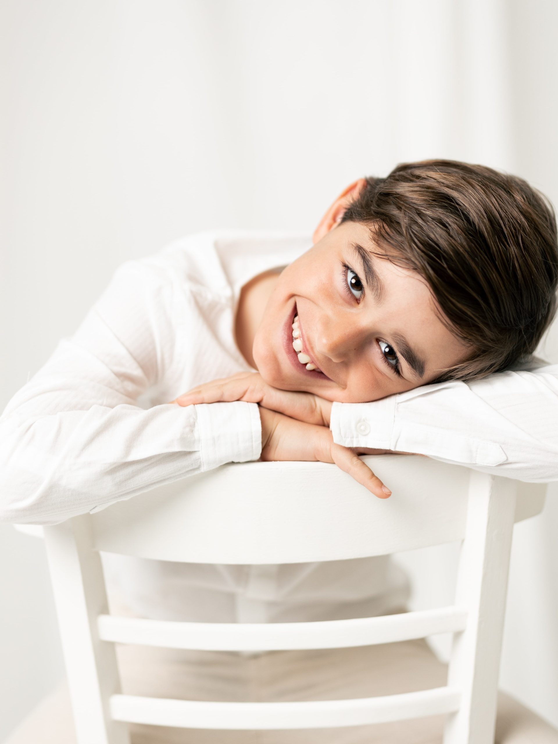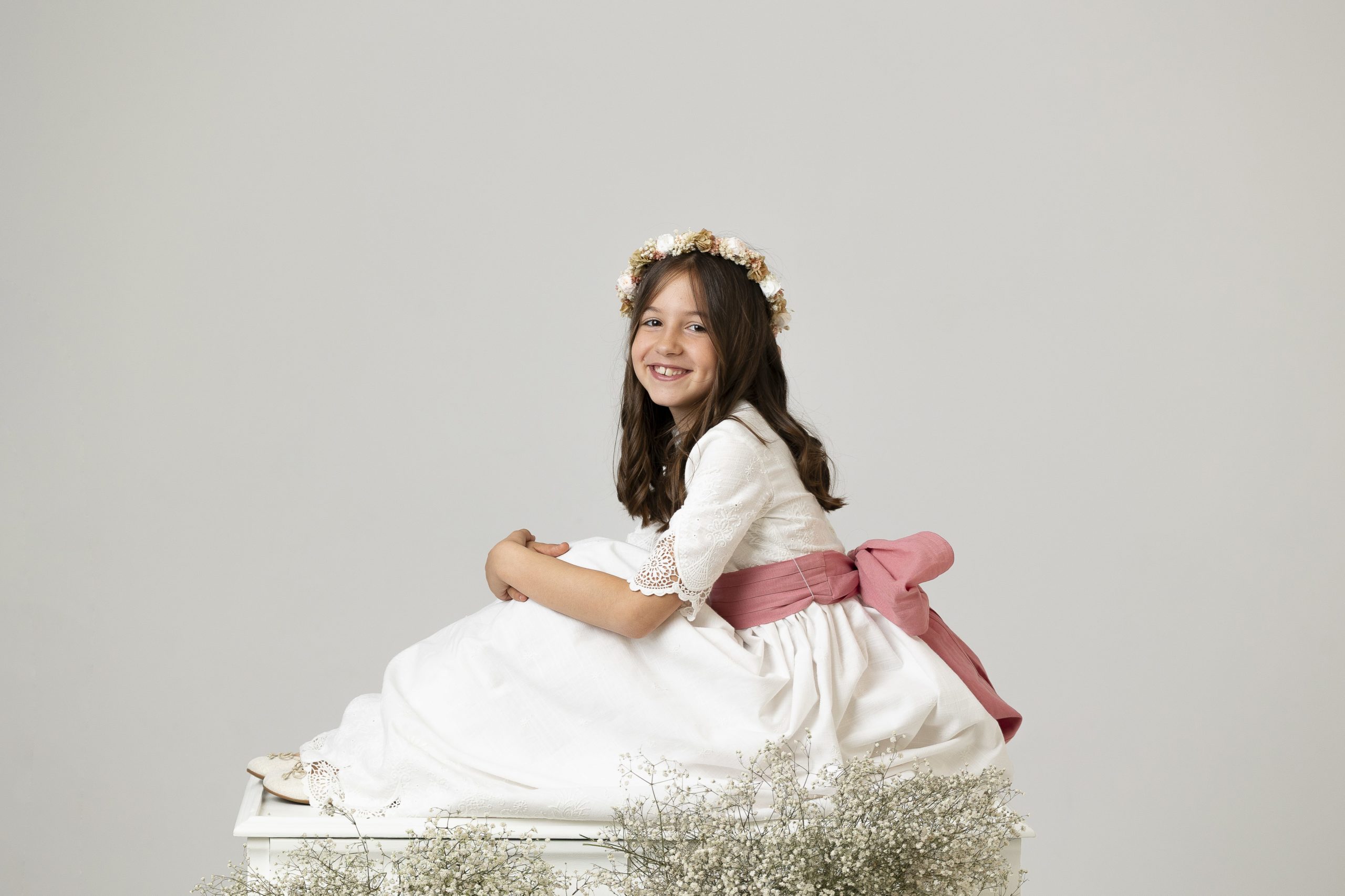 Para las fotos de la primera comunión en estudio tendréis a vuestra disposición mi estudio privado. Creemos que el valor real de las fotos de comunión es que sean atemporales y que el absoluto protagonista sea el niño y no el decorado o mobiliario.